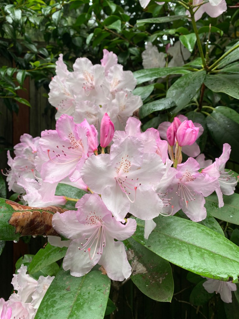 因为已经得过了covid,最近这两个周末出门较之前都更为频繁一些,开销自然也有所增加。之前两年不论周中还是周末几乎总是窝在家里,没有什么花费。现在生活终于逐渐恢复正常,花费增长也不奇怪。上周末去了岛上,这周末就直接进了城——不是Bellevue县城,而是Seattle真正的城。早上六点多醒了,前晚两个人都没有洗澡,就各自洗了个澡,吃了饭还只有七点出头。在Google Maps上看了一下有什么地方可以去,找到了Washington Park Arboretum,在UW南面。周六的早晨哪里车都少,开过去只要一刻钟,于是决定去看看。到的时候还在下雨,车上的伞也不知道被放哪去了,只能靠防雨衣,把帽子戴着。气温还是有点低,好在走了几步之后身上就慢慢开始热了起来。Arboretum是指专注在树的植物园,难怪看到的都是各种各样的树,而非其他botanic gardens有其他种类的植物。其实也看到了一些花,开得很好。加之正在下雨,花瓣和花蕊上的细小的雨水滴更透出花的春色。