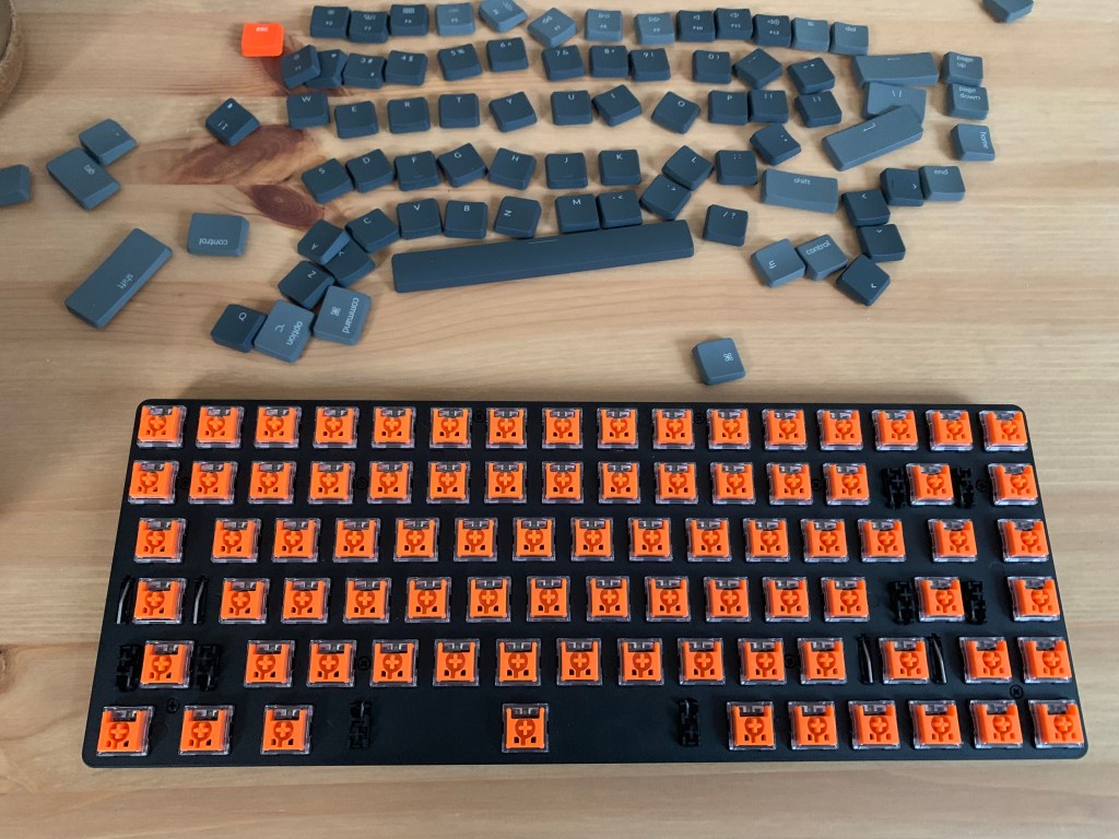 送到的是一个键盘和一堆机械键盘轴。刚好也写了一阵报告了,不想写了,就去换键盘轴。买的是Keychron low-profile mechanical keyboard的optical orange switches. Orange switches are clicky switches, just like the common blue switches. Yet different from blue switches, the sense of pressure is higher in orange switches. So you need to press the key caps with more force. 但是因为它终归是low-profile switch,所以整个键程并没有标准机械键盘键程那么长。我用了大概一个小时才把Keychron K3的原版茶轴全部换成新的橙轴,只能说轴体虽然是hot swappable(轴体直接可以从键盘电路板上拔下来,没有焊接),但是通用的拔键器在用来把这款键盘的轴的时候还是很费劲,可能还是轴安得太紧了。