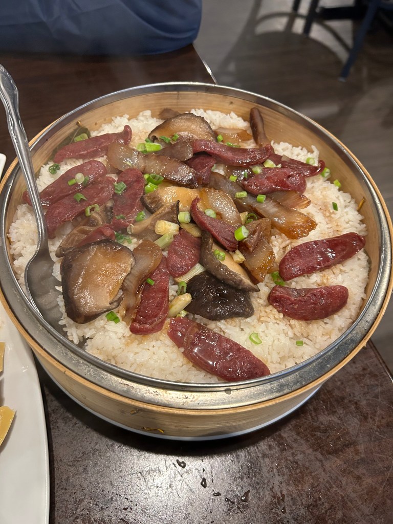 荷叶腊味蒸饭很大一盆