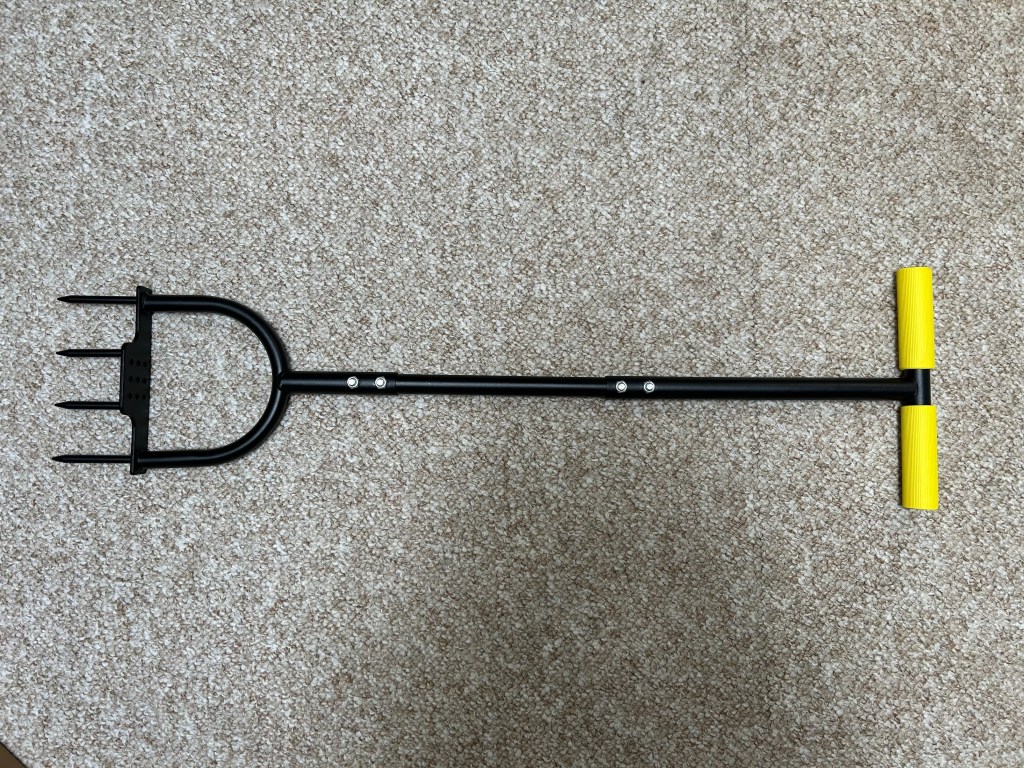 本来以为一个上午就可以把前院的整个草坪保养好的,毕竟昨天已经把割草这个步骤做了,结果是我过分低估了“给草坪通气”这个步骤需要的时间。我以为一个小时绰绰有余,然而前院那么一小块草坪我居然通气通了两个半小时才搞定,期间还发现姨妈来了…… 我用的通气工具不是自动工具,插上电池就可以推着往前走,像割草机一样;我用的是手动工具,有点像个铲子,但是底端铲子的部分是四个垂直的条状尖刺,插到地里面去来通气。虽然昨天下过雨,土地比一般情况湿润,但是要把通气工具插进地里还是很困难,只能把脚踩在踏板上面,左右晃动着手柄往下插。拔出来也有点辛苦,毕竟工具有那么重。通气孔的密度也不能太低,不然就起不到通气的效果。总而言之,为了给草坪通气我是累得满身汗,中间还进屋休息了两次。